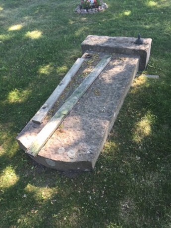 Det fanns tidigare en familjegrav på Karaby kyrkogård vid entrédörren till vänster. Gravstenen togs bort sommaren 2018. Den behövde förstärkas och ingen släkting önskade betala för detta. Gravstenen kommer att slipas ned och används till stenar i asklunden. Jag, och mina föräldrar besökte graven den 6 juli 2018. Gravstenen låg då ned med texten mot marken.