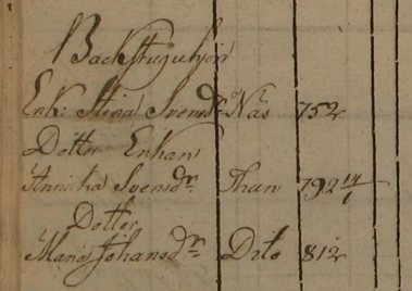 Stinas make Sven avlider den 14 april 1806 av lungsot, står som 51-årig bonde i Truve. Stina blir då änka endast 54 år gammal. Bouppteckningen – Han efterlämnar änka och tre myndiga barn. Till förmyndare föreslås den avlidnes broder Håkan Håkansson. Det finns många saker uppräknade som ägodelar men det mesta är svårläst. Kvar i boet blir 78 kronor och 47 öre. Låter inte mycket i dagens pengavärde men var säkert en ansenlig summa då. Frågan är dock om Stina fick ta del av pengarna?
