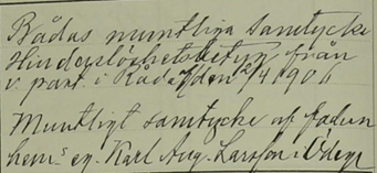 Kort därefter i april 1906 lystes det för Berta och hennes blivande man, fem år äldre Gustaf Adolf (även kallad Adel) Svensson (f.1881) hemmason från Erik Hermansgården i Råda församling.