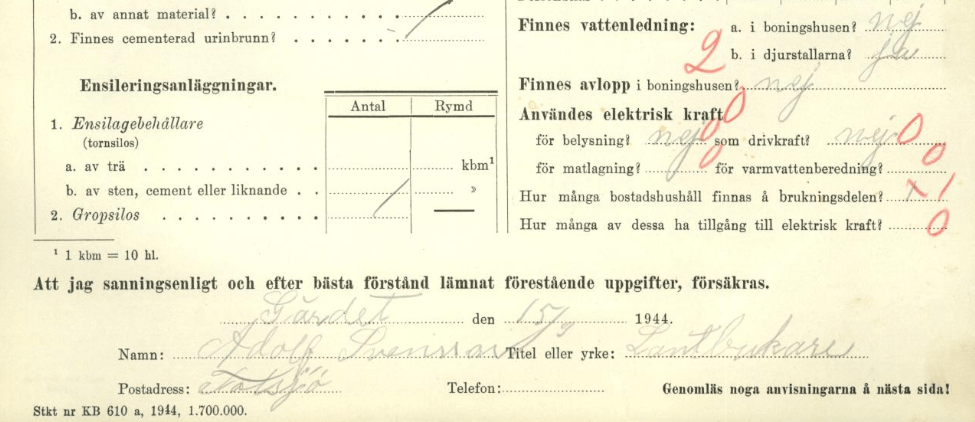 År 1934 bor Adel och Berta tillsammans med de yngsta barnen Henning, Signhild och Rigmor på Gärdet, 1940 bor bara yngsta dottern Rigmor kvar med föräldrarna. Gården bestod av 14 ha mark, varav 2 ha skog. Vid en jordbruksräkning 1944 kan man läsa att det varken fanns vatten, avlopp eller elektricitet i boningshuset.